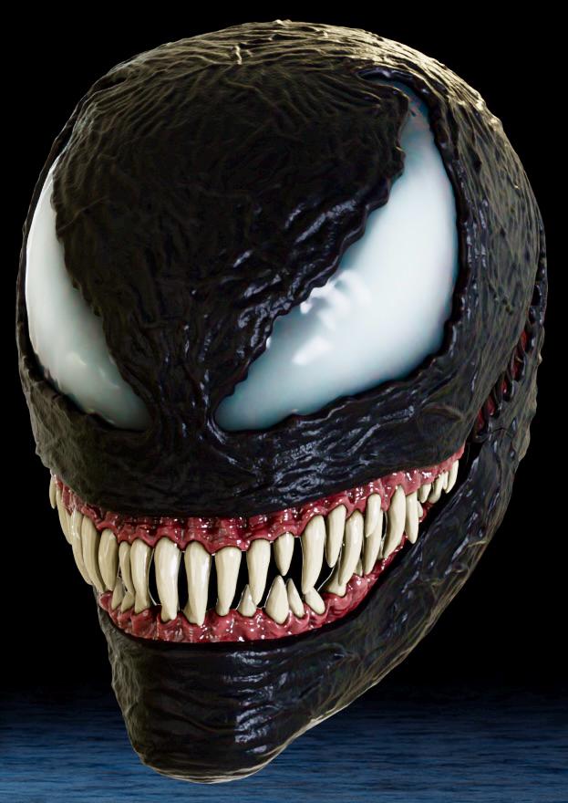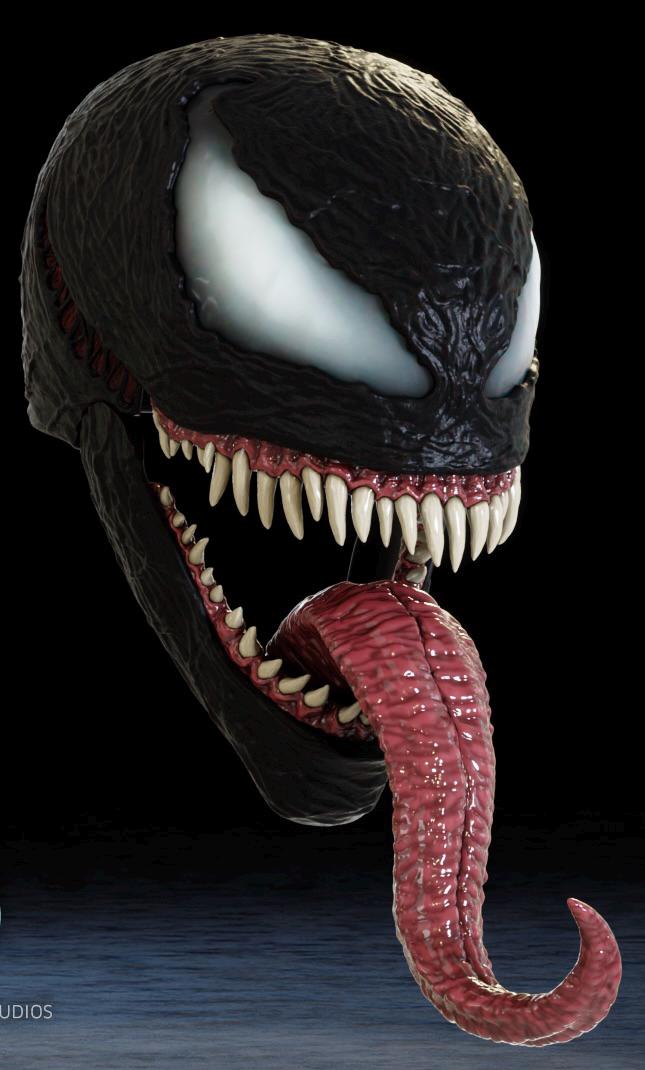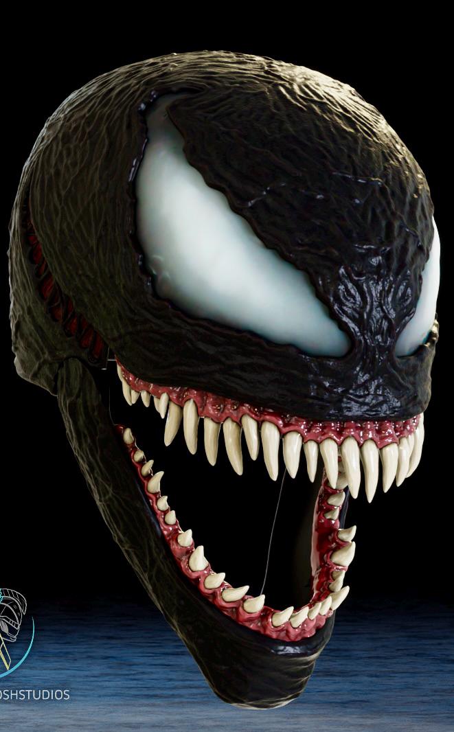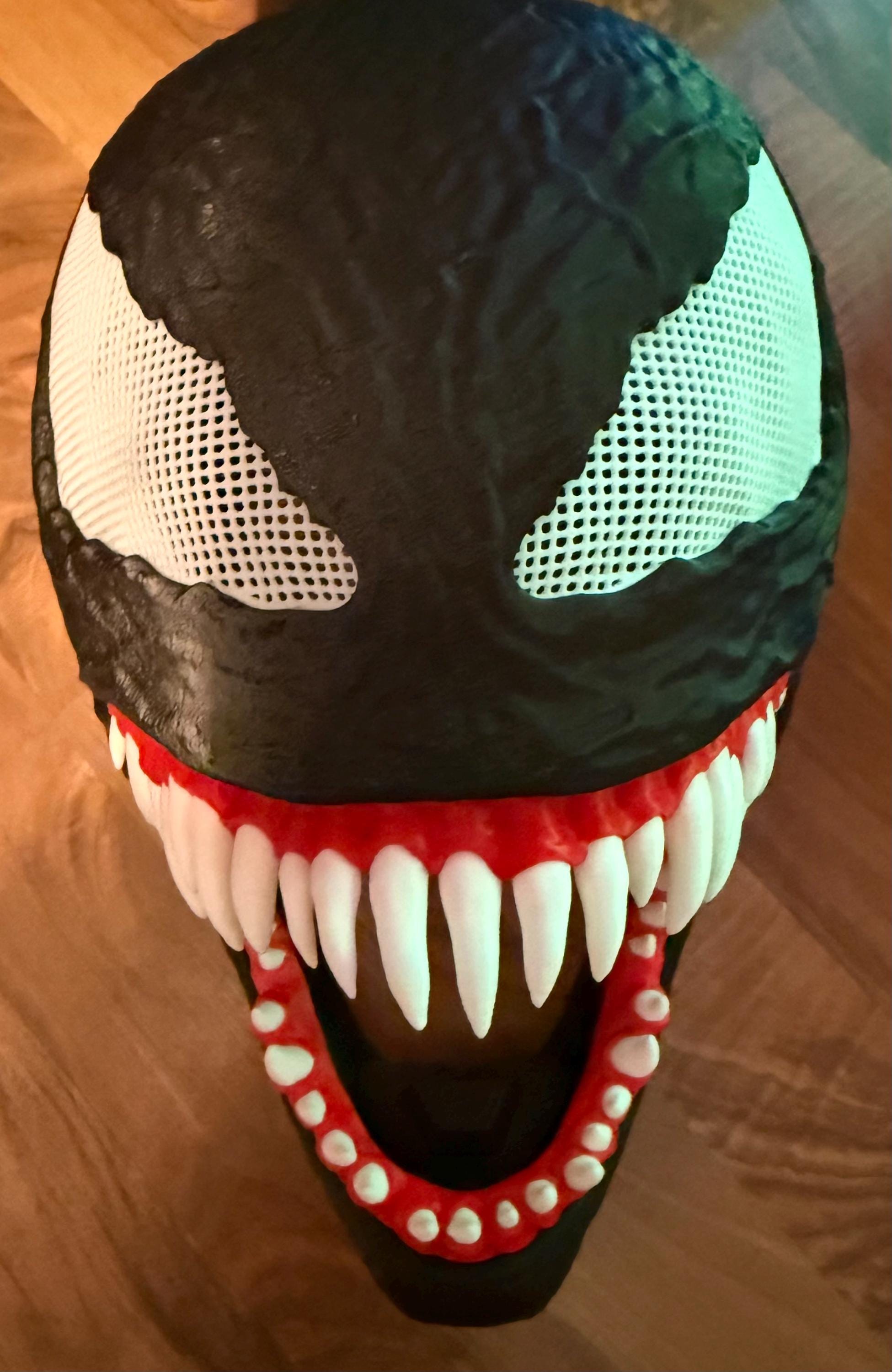 This is a 3d printed Venom mask. The mask has a moveable jaw with optional tongue.