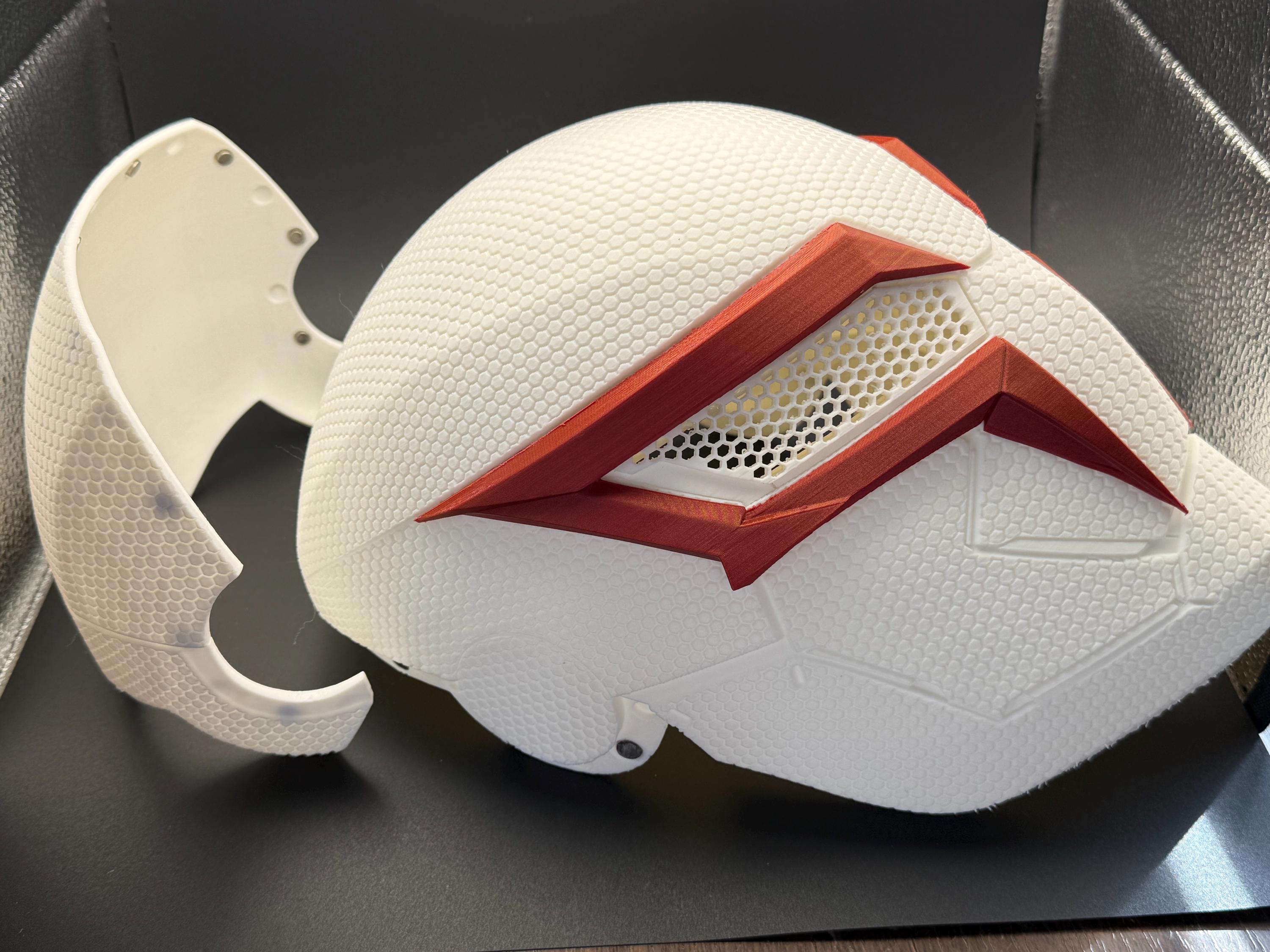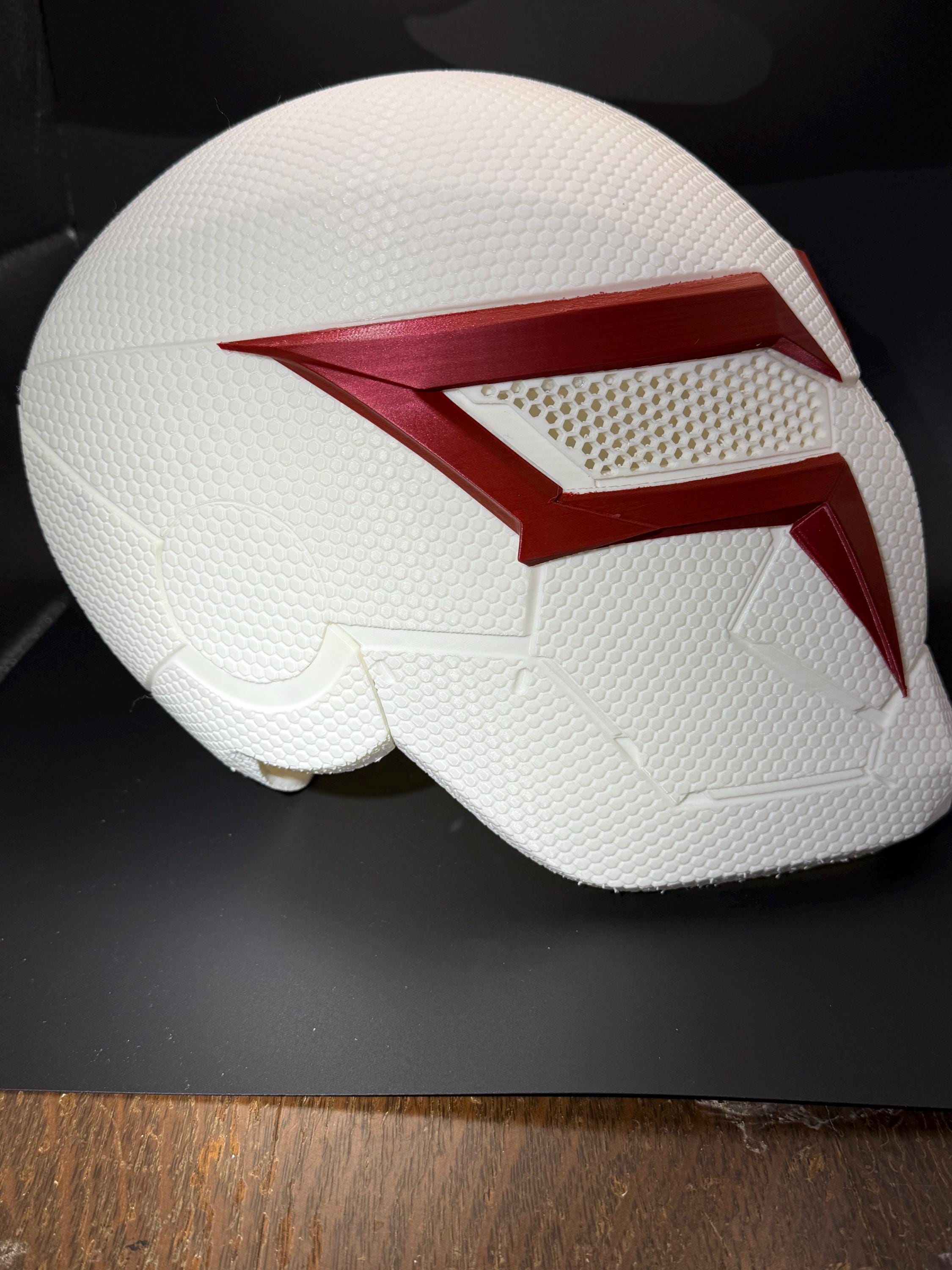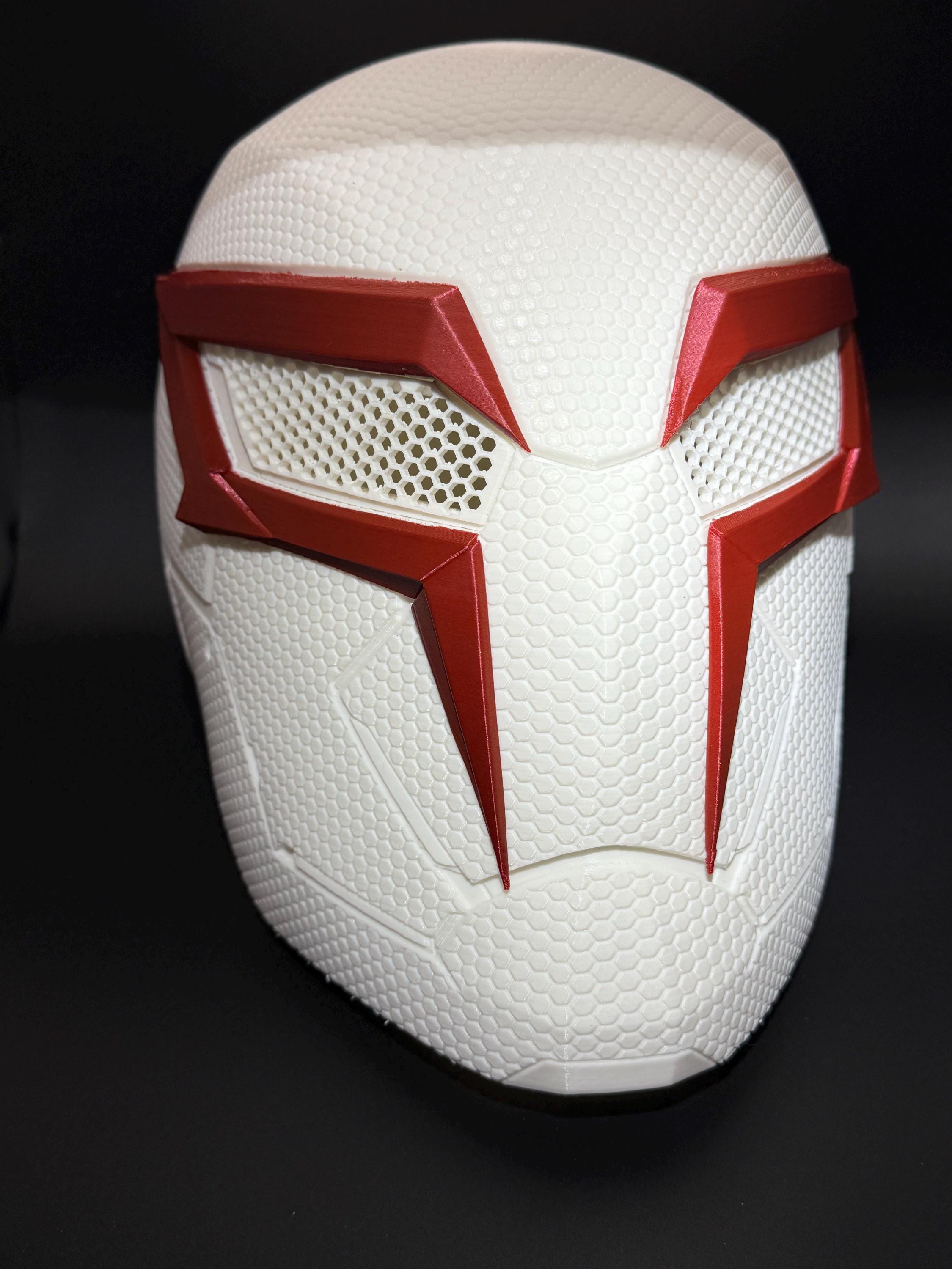 Spider-Man 2099 3d printed helmet. Back panel and front panel are held together with magnets for a quick release. Standard fit, fits most adults. please reach out with sizing needed so we may print the item correctly. thank you. *DISCLAIMER: with 3d prints small defects may occur. Each item is inspected before shipment/pickup but if there is an issue please let me know and I will fix right away. Thank you!*