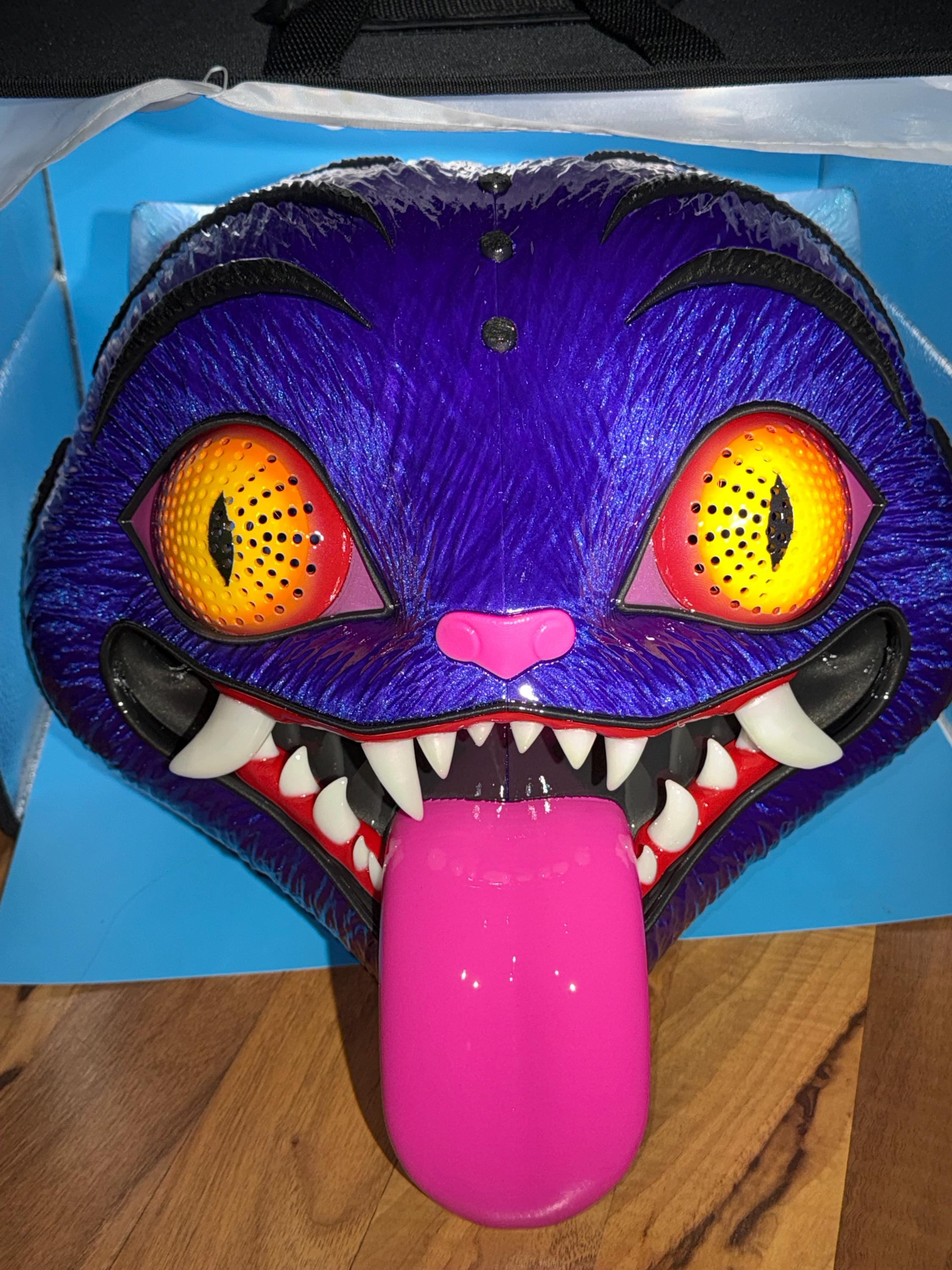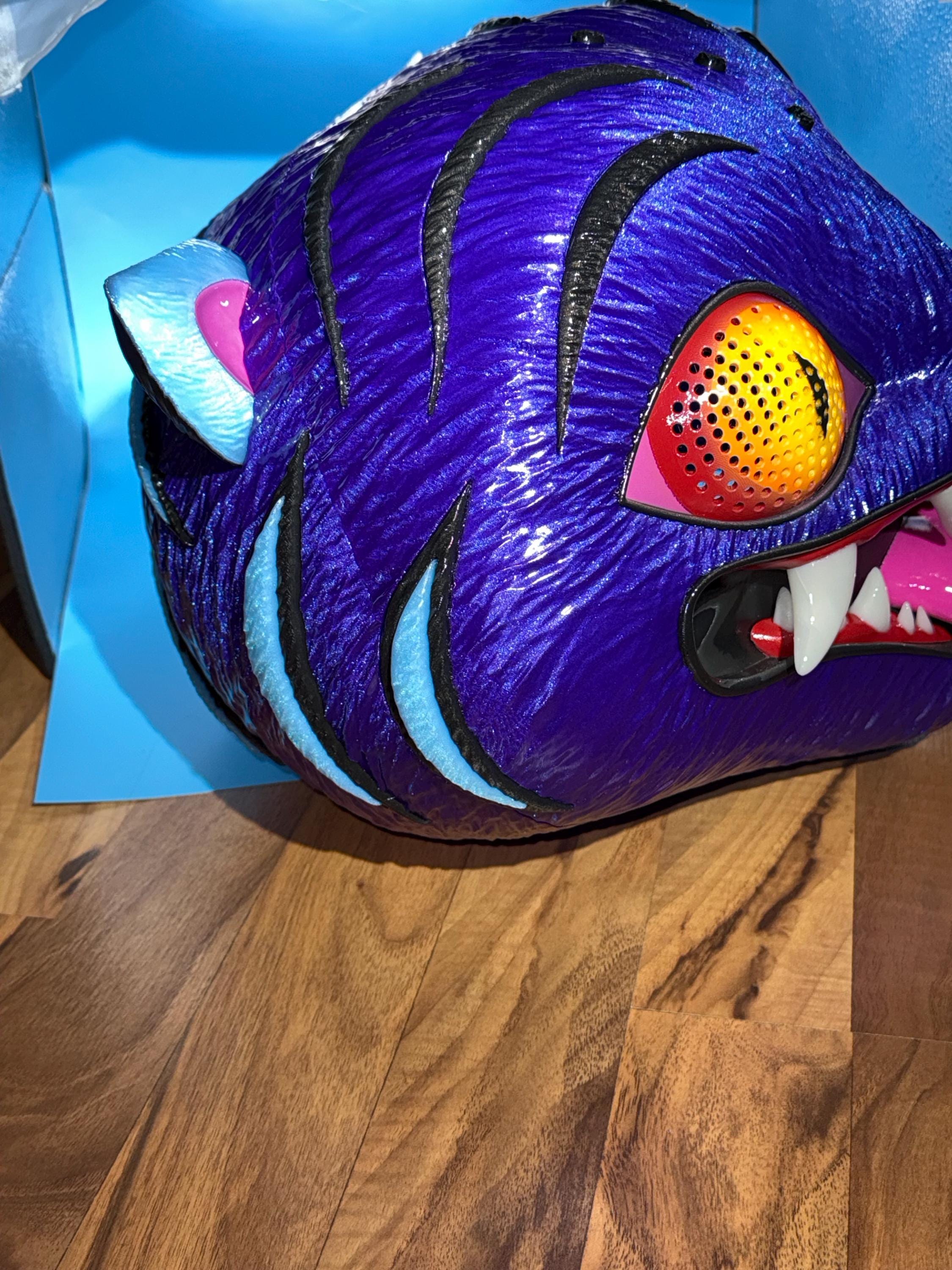 3D printed KPOP demon hunter tiger mask. High gloss clear coated, unique color design, teeth glow blue. Only one available, ready to ship!