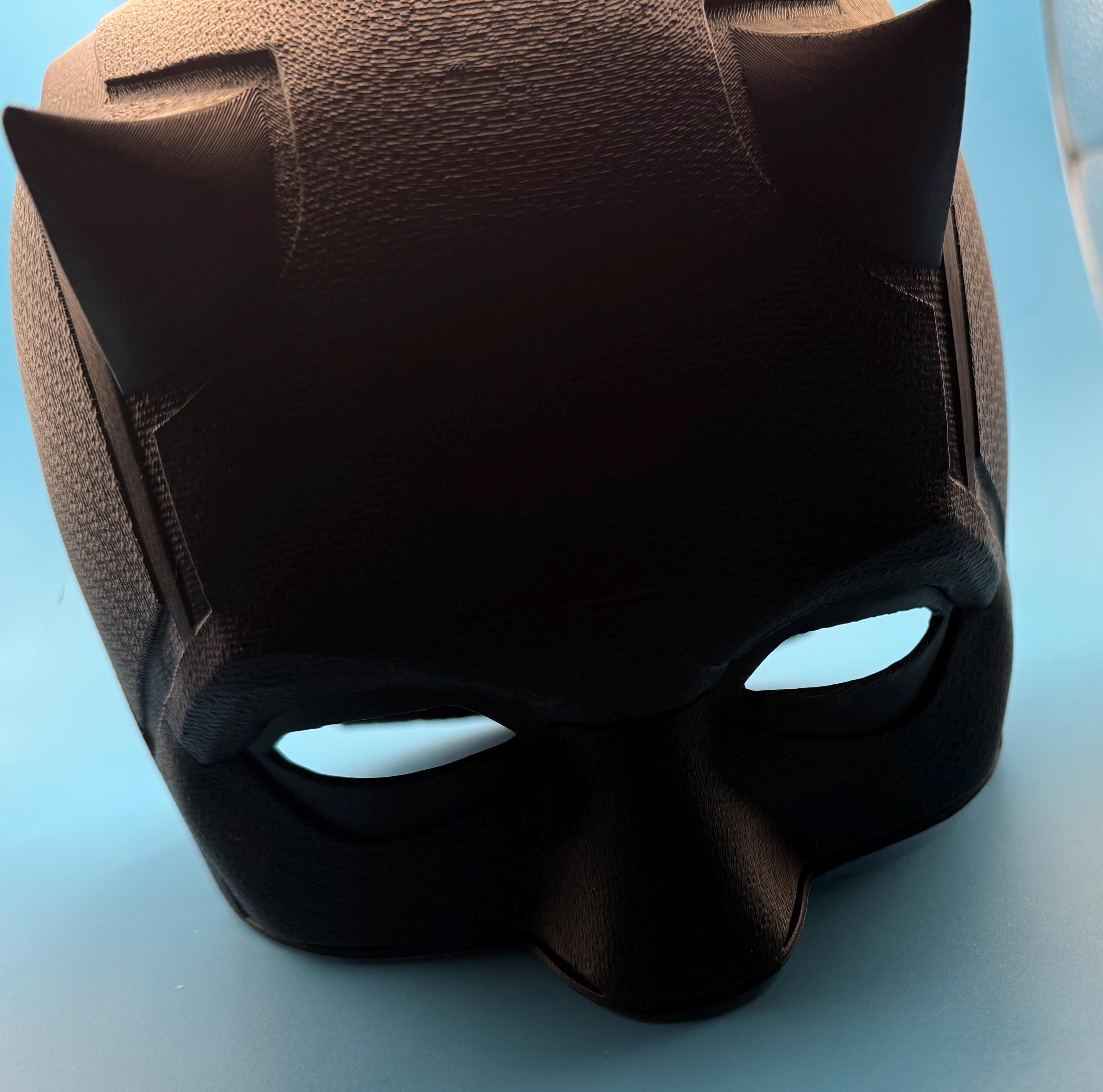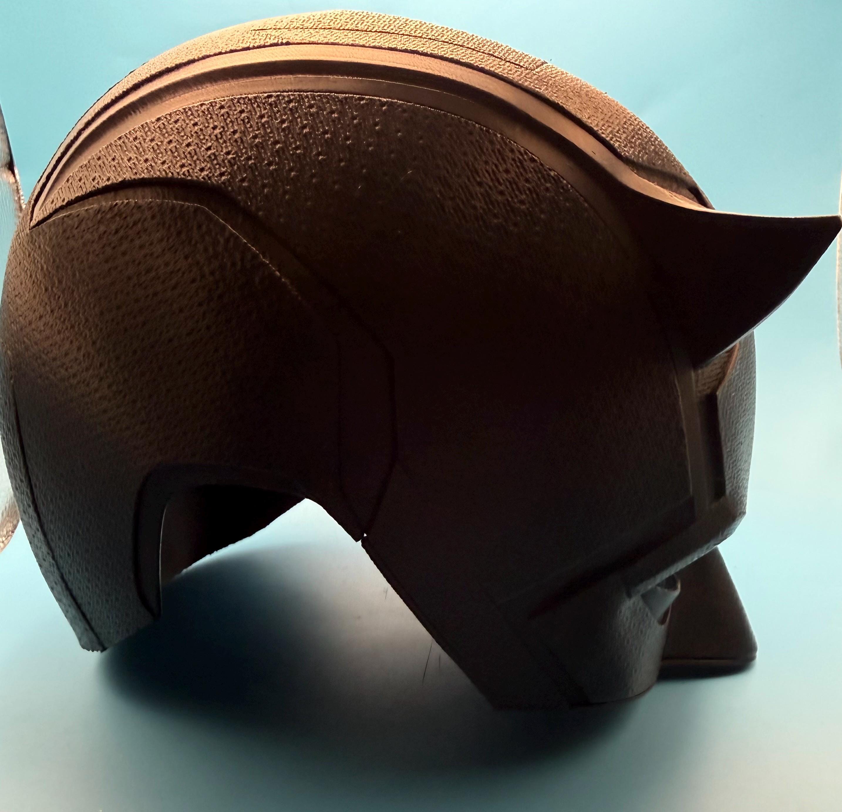 3d printed black fabric-like texture Daredevil mask. standard fit, fits most adults. This mask fits a head size of 7 1/4 and can ship right away. Please reach out with custom sizing needed so we may print the item correctly. Thank you. For all other sizing it will take 1-3 days to print.